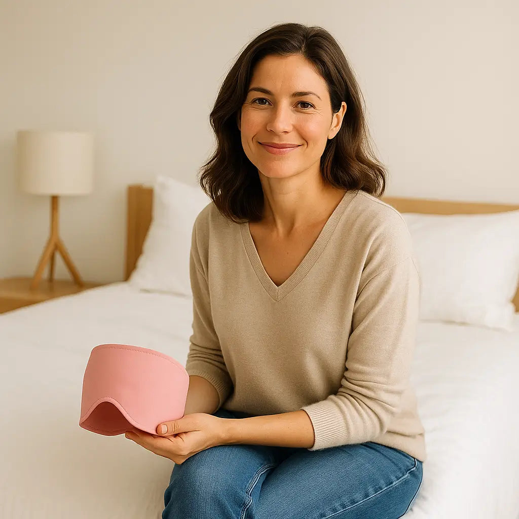 Sim! A Nuvrya Calm não possui contraindicações e foi pensada justamente para momentos de dor intensa. A compressão suave e o bloqueio de luz ajudam seu corpo a se acalmar sem esforço.